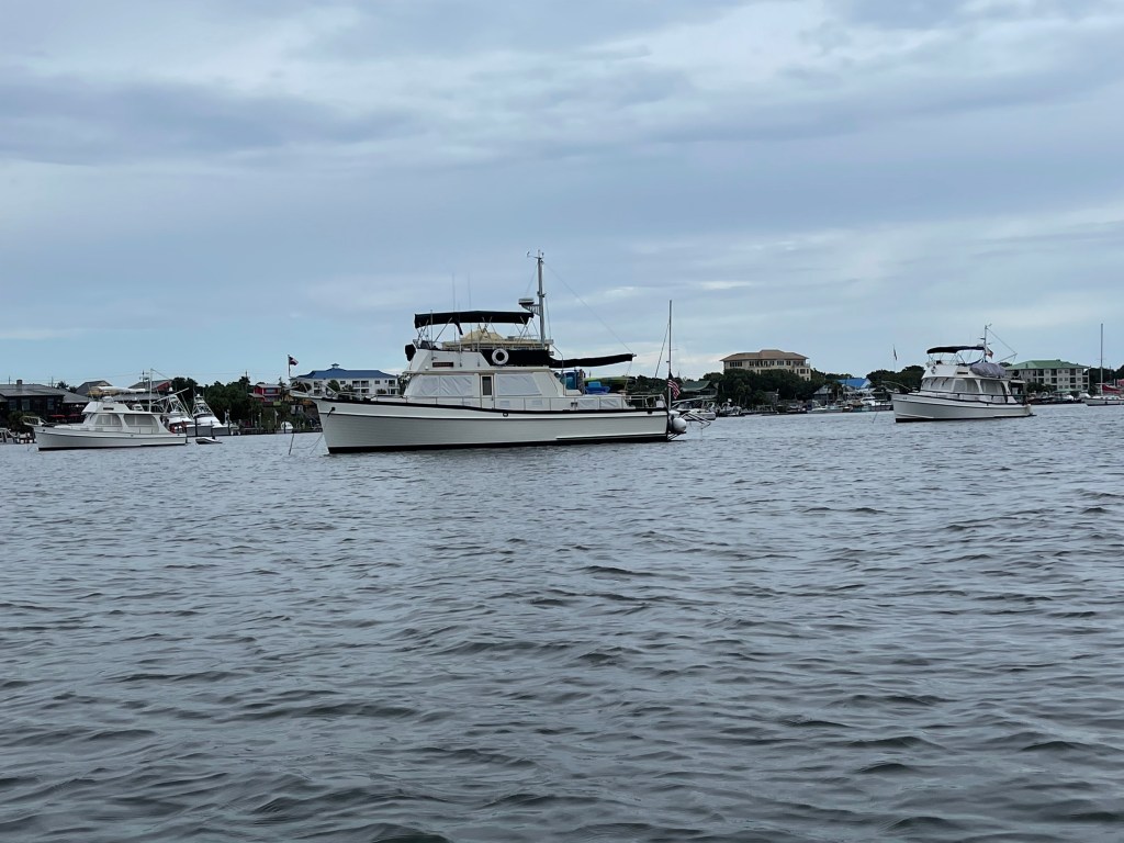 Claire and friends headed back to their anchorage. There are 3 Grand Banks in Destin Harbor today; surely a sight to see!