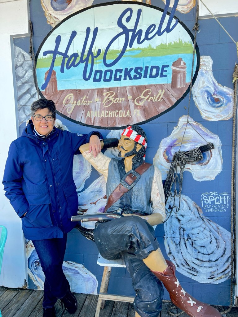 Another chill(y) day in Apalachicola today. Sunny and 45 degrees with 15 mph winds out of the north. Great biking weather, you say? I think not, but out we went anyway!